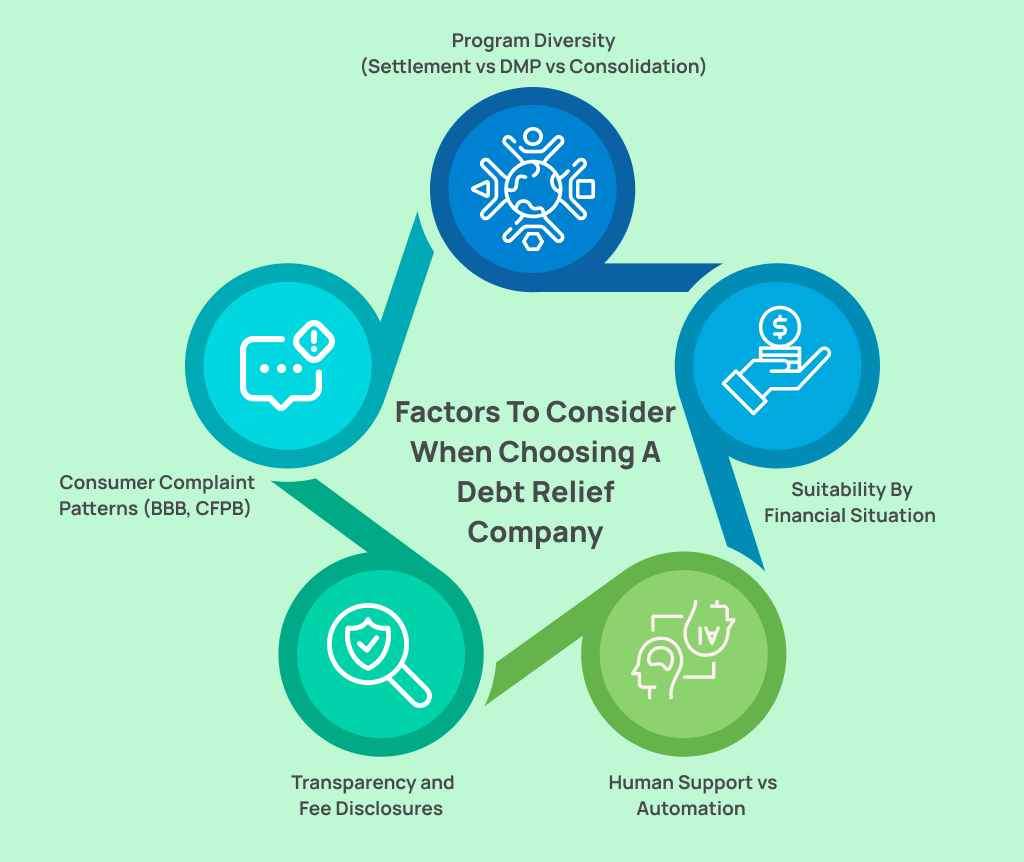 There is no single “best” company for everyone. The right provider depends on your debt size, income stability, emotional comfort level, need for human guidance vs scale or whether repayment is realistic to your current financial status.